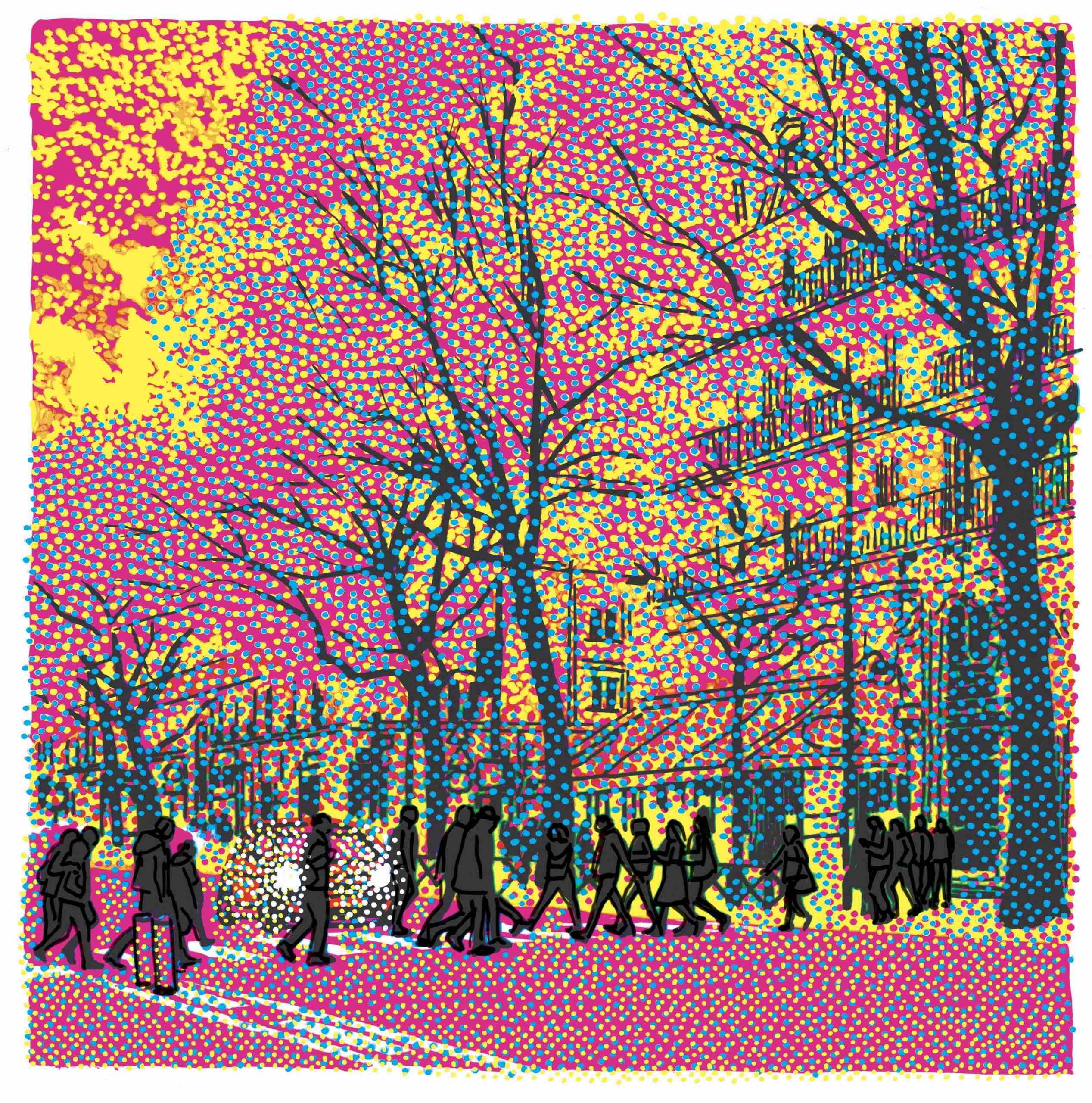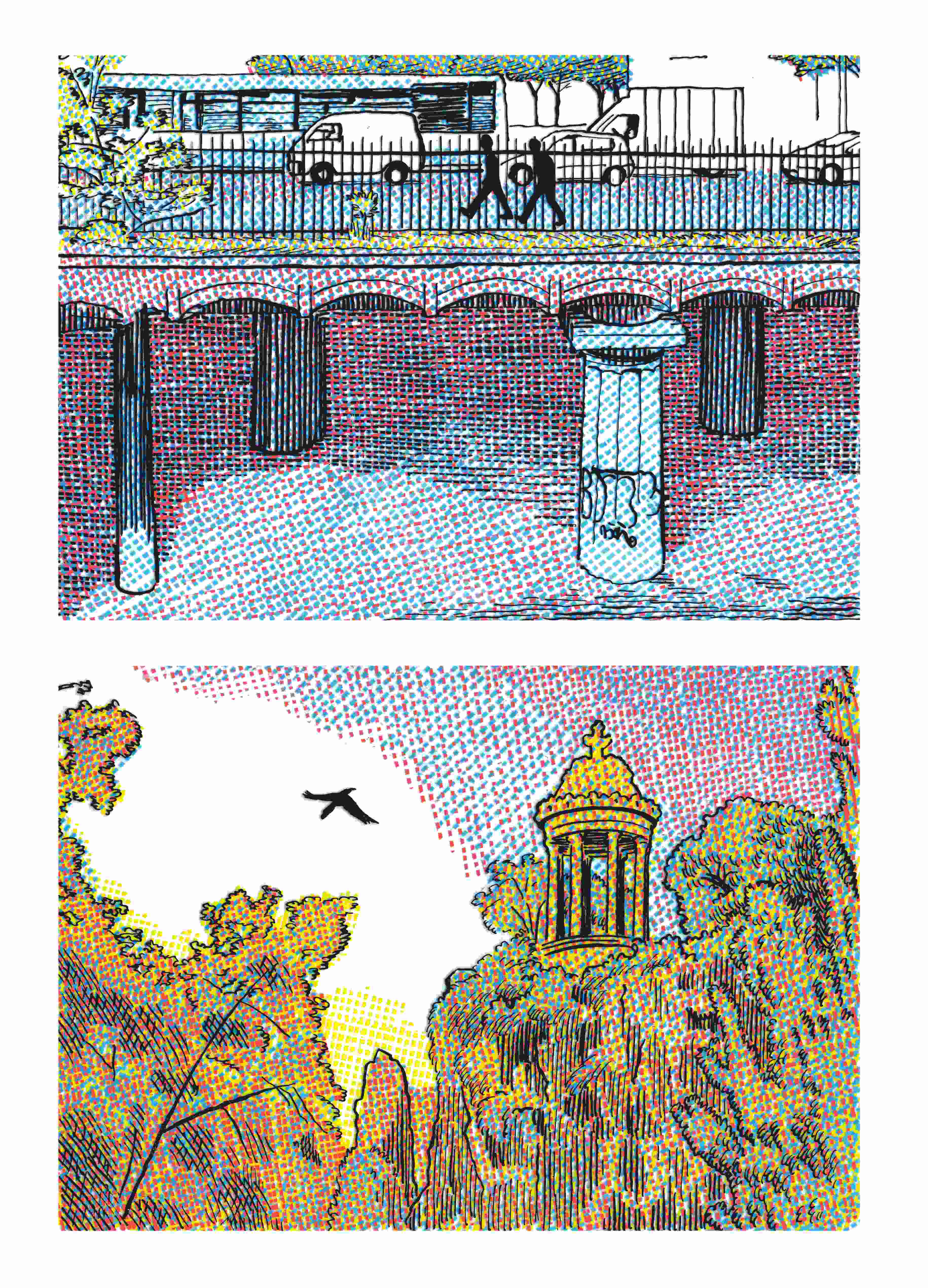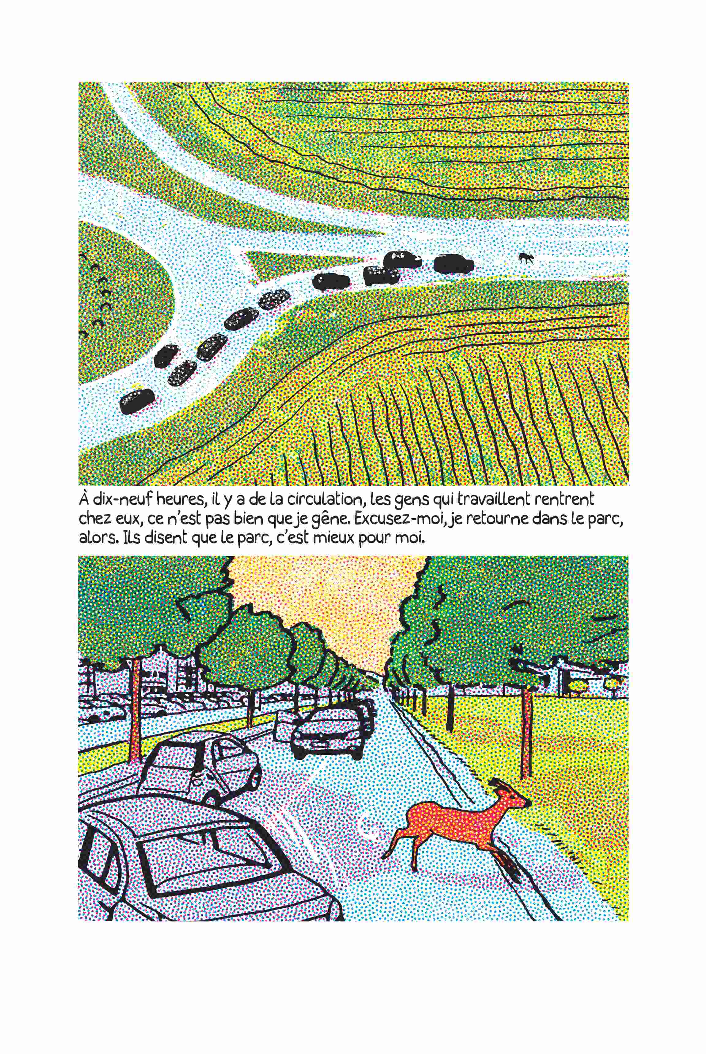 Ce faisant, il déambule dans la ville, occasion de réflexions, de rêveries, de souvenirs, mais aussi de rencontres.