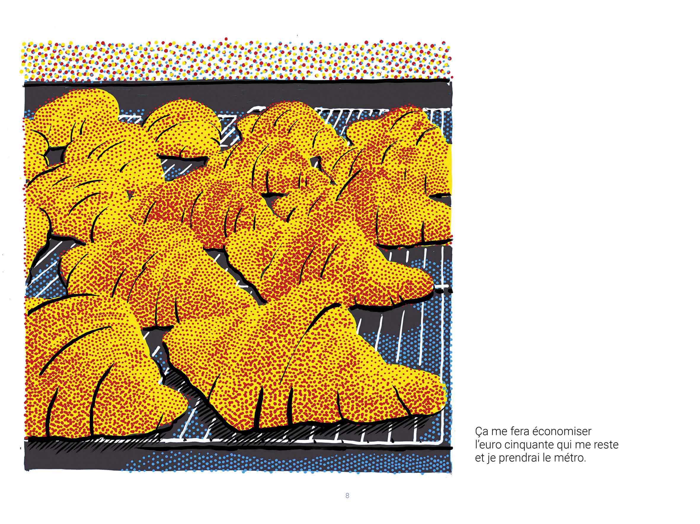 Résumé de l’éditeur : C’est l’histoire d’un homme, jeune, qui se nourrit d’un croissant par jour. Simplement parce qu’il n’arrive pas à joindre les deux bouts. Demain, il sait qu’il dépassera son découvert autorisé de 400 euros à la banque. Il cherche une solution à ce problème.